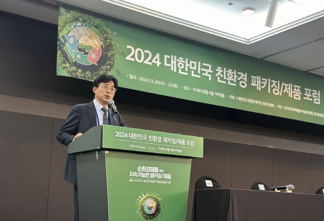 최안섭 SK지오센트릭 사장이 20일 서울시 강남구 더케이호텔서울에서 열린 ‘2024 대한민국 친환경 패키징·제품 포럼’에서 이데일리 기자와 만나 이같이 말했다.