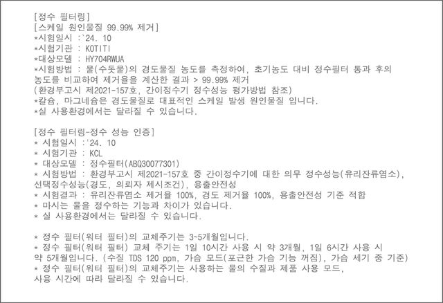 이전 모델 또한 놀라운 수준의 정수 기능을 지니고 있었지만, 한층 더 업그레이드 된 2024년형 제품에서는 거의 완벽에 가까운 스펙을 자랑한다. 물통부터 오염 걱정 없는 스테인리스 소재로 이뤄져 있으며, 물통에 물을 채우면 ‘정수필터’를 통해 유해물질과 미네랄 성분, 그리고 물이 마를 때 하얗게 남는 스케일 원인 물질까지 99.99% 수준으로 없애준다.