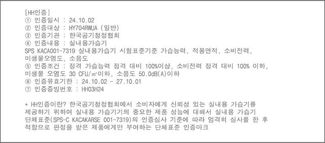 일반 가습기가 지닌 아쉬운 점들을 모두 보완한 것은 물론 가습 성능과 미생물 토출, 소음 기준을 모두 통과하고 HH인증까지 획득한 제품이기에 면역력이 약한 노약자가 있는 집에서도 믿고 사용할 수 있을 것이다.