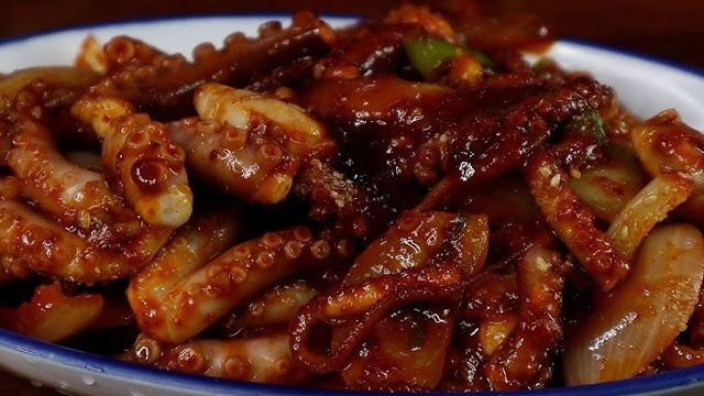 낙지볶음은 한국의 대표적인 반찬 중 하나다. 작은 낙지를 썰어서 마늘, 생강, 고추장 등의 양념과 함께 볶아 만든다. 여기에 양파, 대파, 오이, 고추, 호박 등의 채소를 넣어서 같이 볶기도 한다. 보통 볶은 참깨를 뿌려서 먹는데, 한국의 뜨끈한 국이나 찌개와 함께 먹으면 정말 잘 어울린다.