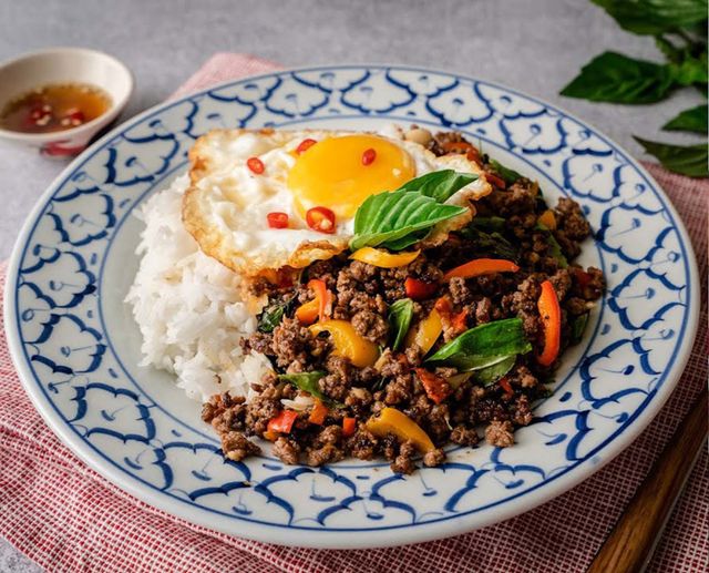 팟 카파오는 태국 길거리 음식의 정수이자 현지인들의 일상적인 한 끼를 대표하는 볶음 요리다. 신성한 허브로 여겨지는 홀리 바질(성스러운 바질)의 강렬한 향과 매콤한 고추, 알싸한 마늘이 어우러져 태국 요리 특유의 복합적인 풍미를 만들어낸다. 주로 돼지고기나 닭고기를 사용하지만 해산물이나 두부로도 변형이 가능하며, 태국의 필수 조미료인 피쉬소스와 간장으로 감칠맛을 더한다. 전통적으로는 반숙 계란 프라이를 올린 밥과 함께 서빙되는데, 노른자가 터져 나와 밥과 어우러질 때의 풍미는 이 요리의 백미로 꼽힌다. 간단한 재료로 만들어지지만, 그 맛의 깊이와 조화로움으로 인해 태국을 대표하는 컴포트 푸드로 자리잡았다.