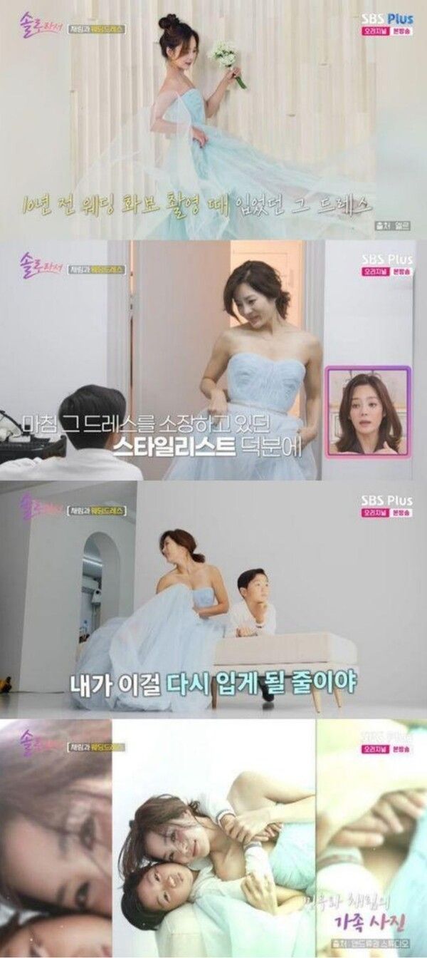 [메디먼트뉴스 김민기 기자] 배우 채림이 10년 전 웨딩화보에서 입었던 드레스를 이번엔 남편이 아닌 초등학교 1학년 아들 민우와 함께 다시 입었다. 모자(母子)의 특별한 하루는 지난 19일 방송된 SBS Plus와 E채널 공동 제작 예능 ‘솔로라서’ 4회에서 공개됐다.