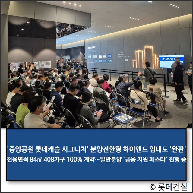롯데건설이 광주광역시에서 선보인 '중앙공원 롯데캐슬 시그니처' 분양전환형 하이엔드 임대 세대 계약을 100% 완료했다.