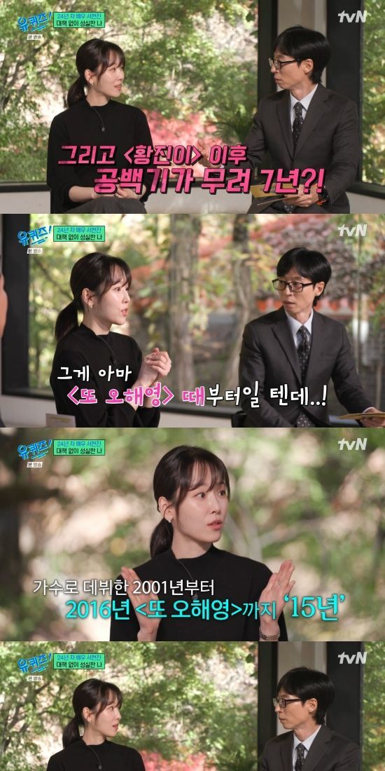 유재석은 "4년을 갈고 닦은 끝에 '황진이'에 출연을 하게 된다. 역할이 크진 않았다. 이 이후에 7년을 또 (공백기로) 그냥. 왜 데뷔한 지 얼마 안 있다가 스타가 되신 것처럼 느껴지는지 모르겠다"라며 의아해했고, 서현진은 "아마 보시는 분들은 어느 날 나왔는데 꽤 얼굴이 나오네'라고 생각을 하셨을 거다. 그게 아마 2016년 '또 오해영' 때부터일 텐데 제가 데뷔를 2001년에 했으니까 15년이 뜬다"라며 회상했다.