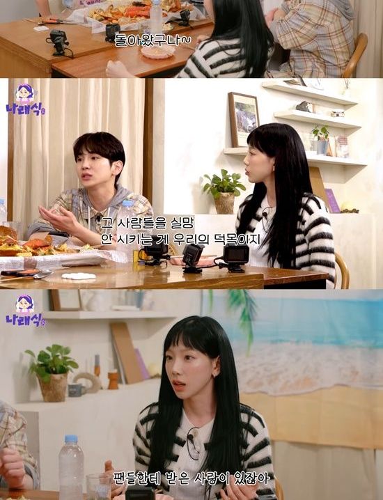 태연 역시 "팬들에게 받은 사랑이 있다. 그거에 대한 의리인 거 같다. 의리만 잘 지키면 서로 관계를 오래 유지 않을까 싶다"고 자신의 생각을 말했다.