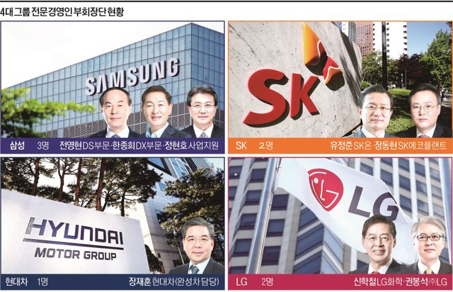 삼성그룹의 경우 이재용 삼성전자 회장이 계속되는 '사법 리스크' 속에 경영에만 온전히 집중할 수 없는 상황이라 부회장들이 주요 부문에 포진돼 경영을 주도하고 있는 상황이다.