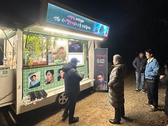 공개된 사진에는 영화 '어쩔수가없다' 촬영 현장에 황동혁 감독이 선물한 커피차의 모습이 담겼다.