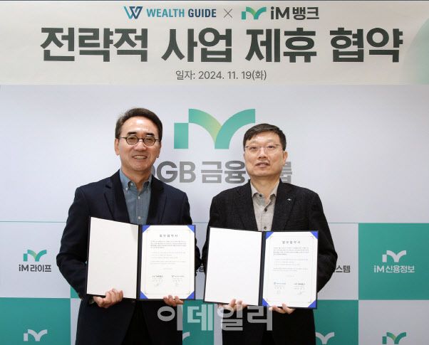 특히 웰스가이드와의 협업을 통해 iM뱅크의 기존 금융 서비스 범위를 확장하고, 고객의 재정적 목표에 맞춘 서비스가 제고될 것으로 기대하고 있다.