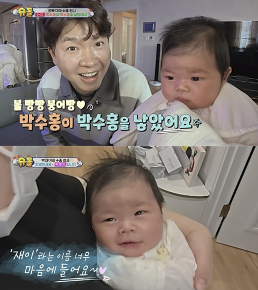20일 방송된 KBS2 ‘슈퍼맨이 돌아왔다’에서는 박수홍의 딸 전복이가 출생 신고를 마치고 ‘박재이’라는 이름이 생긴 소식을 전했다.