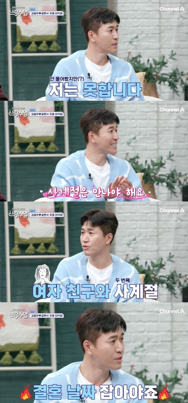 (엑스포츠뉴스 이유림 기자) 김종민이 11살 연하와 결혼 날짜를 잡을 예정이라고 밝혔다.