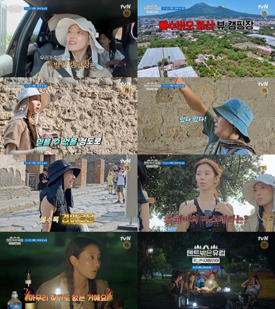 21일 tvN ‘텐트 밖은 유럽 - 로맨틱 이탈리아 편’ 6회에서는 화산 폭발로 역사가 돼 버린 고대 도시 폼페이로 향하는 라미란, 곽선영, 이주빈, 이세영의 이야기가 그려진다.