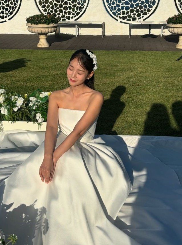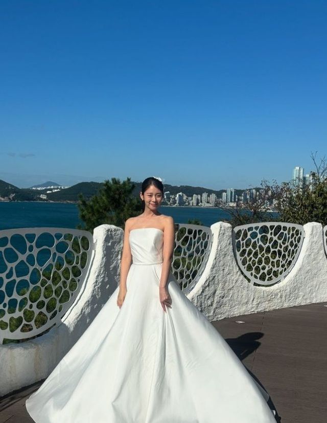 공개된 사진 속 한승연은 실크 소재의 웨딩드레스를 입고 야외에서 포즈를 취하고 있는 모습이다. 한승연은 드라마 촬영을 위해 드레스를 착용한 것으로 보인다.