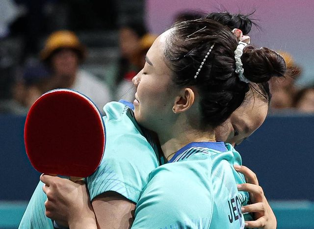 기사와 무관. 서로를 안아주는 신유빈과 전지희 / 뉴스1