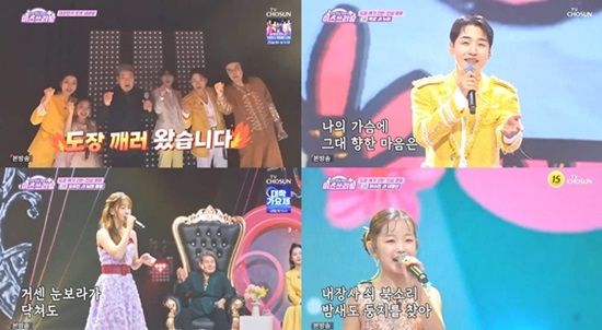올해 데뷔 30주년이자 90여 곡의 음원을 발표한 트로트 대가 진성을 필두로 한 진성 문파는 대표곡인 '안동역에서'로 오프닝을 열었고 같은 소속사인 오유진은 이들의 등장에 당황해 웃음을 유발했다.