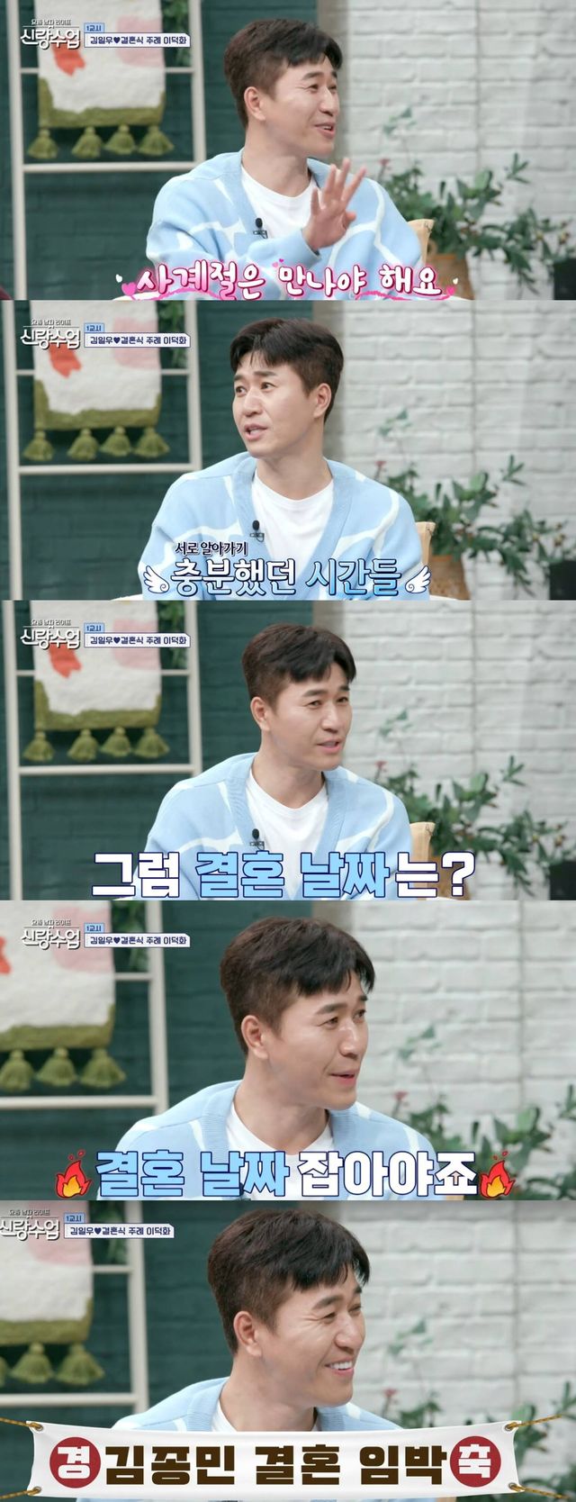 이때 김종민은 “전 급하게는 못 한다. 사계절은 만나봐야 할 것 같다”라고 신중한 태도를 보였다.