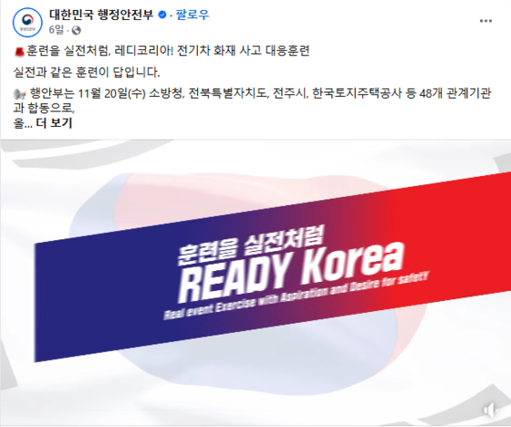 행정안전부는 20일 소방청, 전북특별자치도, 전주시, 한국토지주택공사 등 48개 관계기관과 합동으로 올해 네 번째 레디 코리아 훈련을 실시했다.