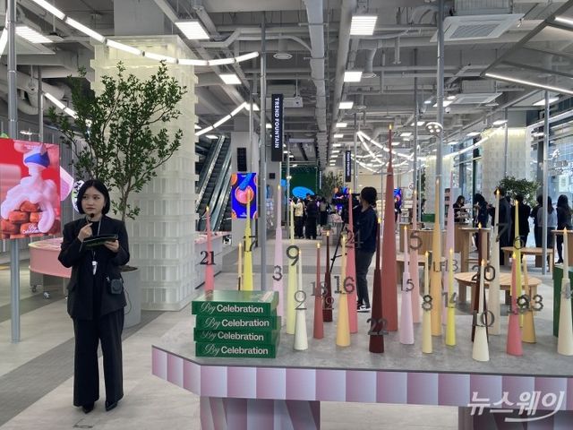 매장 구성에도 혁신을 담았다. 매장 1층에는 화장품 진열대 없이 팝업 쇼룸 'N.플레이그라운드(PLAYGROUND)'와 전시형 체험 공간 '트렌드 파운틴'이 자리해 매달 새로운 K-뷰티 등 콘텐츠를 제공할 수 있도록 했다. 첫 번째 콘텐츠는 CJ올리브영의 25주년 생일파티다.
