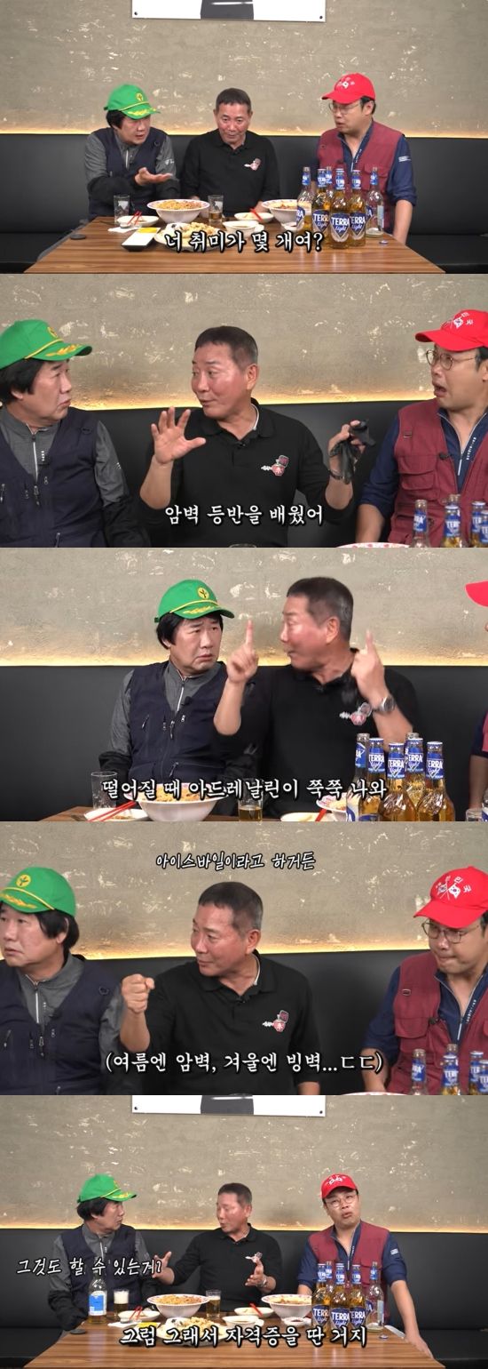 이날 최양락은 이봉원을 향해 "참 취미 부자다. 너 취미가 몇 개냐"고 물었고, 이봉원은 "등산. 등산도 여러 가지가 있다. 그냥 걷는 게 워킹 산악, 트레킹이라고 한다. (그건) 너무 지루하니까 바위를 타고 올라가자 해서 암벽 등반을 배웠다"고 입을 열었다.