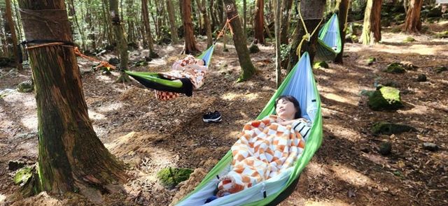 서귀포 치유의숲에서의 산림 치유 프로그램을 즐기는 대만 팸투어단. 제주관광공사 제공