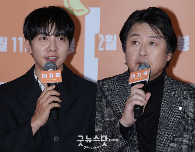 이승기는 김윤석과의 호흡에 대해 "큰 영광"이라고 답했다. 그는 "일단 저는 '대가족'이라는 현장이 촬영장이자, 교육의 현장이었다. 감독님께서도 이야기를 많이 나눠주시고, 제가 김윤석 선배님의 오랜 팬이고, 정말 한 번 선배님과 연기할 기회가 있다면 꿈을꿨다. 이번에 함께할 수 있게 돼 너무 좋았다. 대한민국에서 가장 연기를 잘한다고 하는 분 중 한분과 같이 호흡을 나누며 배울수있는건 큰 영광이었다"라며 감사의 마음을 전했다.