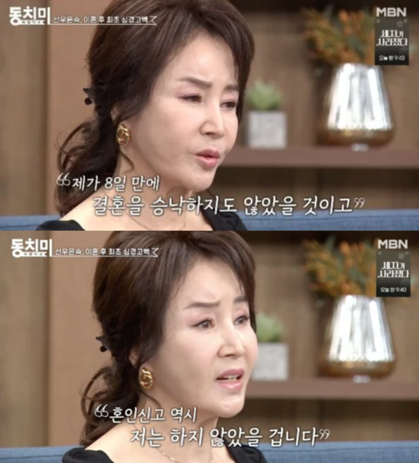 선우은숙은 MBN '속풀이쇼 동치미'에 출연해 "결혼 전 사실혼 관계를 알았다면, 그렇게 깊은 시간을 가진 관계였다면, 제가 8일 만에 결혼을 승낙하지 않았을 것이고 혼인신고 역시 하지 않았을 것"이라고 털어놨다. 또한 유영재가 삼혼이었다며 "(내가) 법적으로도 세 번째 부인"이라고 말했다.