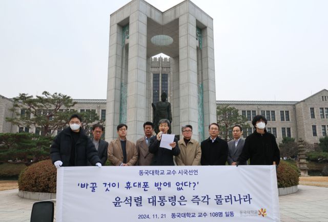 같은 날 동국대학교 교수 108명도 윤석열 대통령의 퇴진을 요구하는 시국선언문을 발표했다.