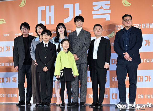 (엑스포츠뉴스 잠실, 김수아 기자) 만둣국집 사장이라는 친근한 인물이 된 김윤석과 삭발을 감행한 이승기, 박수영이 영화 '대가족'의 메시지를 전달했다.