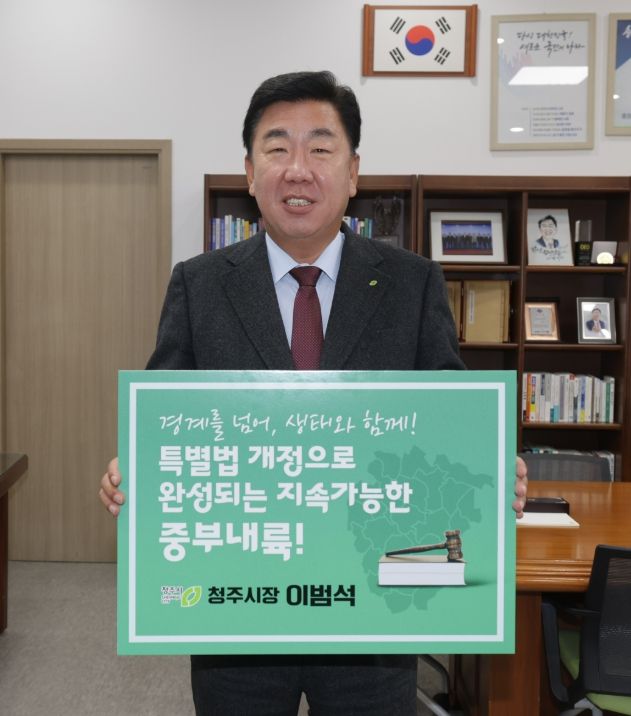 [파이낸셜경제=김영란 기자] 이범석 청주시장이 21일 ‘중부내륙연계발전지역 지원에 관한 특별법’(중부내륙연계발전지역법) 개정의 필요성을 알리기 위해 릴레이 챌린지에 동참했다.