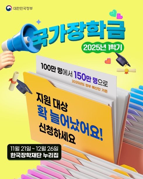 · 신청 : 11월 21일(9시)~12월 26일(18시) 한국장학재단 누리집