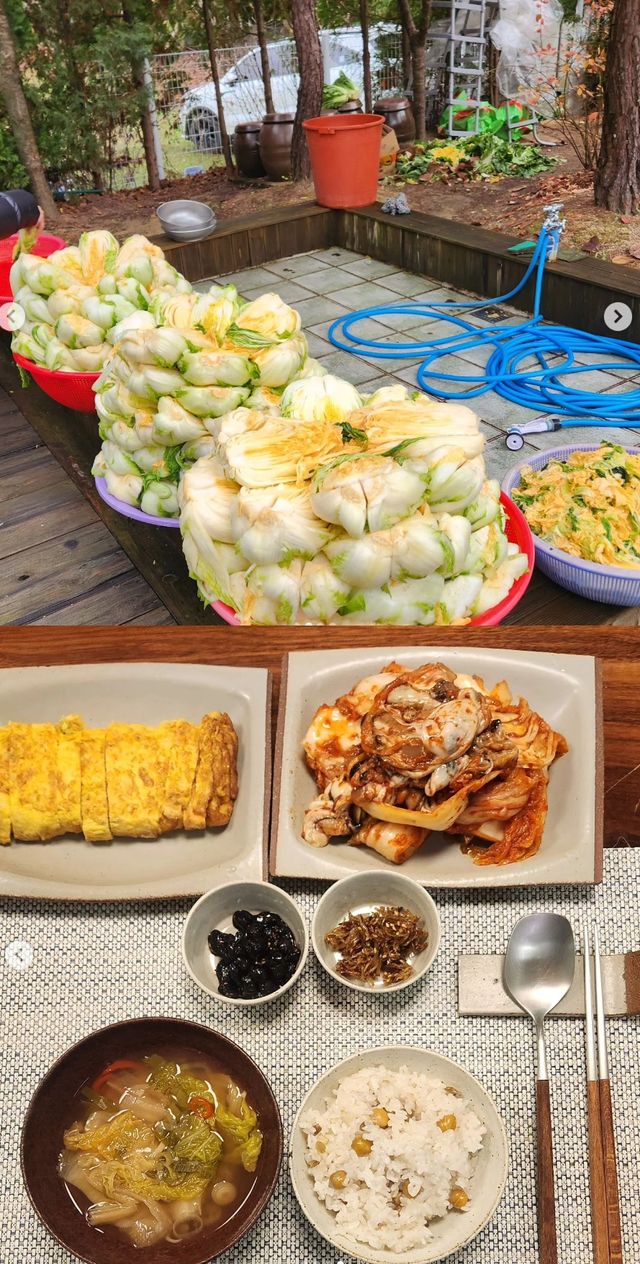이어 그는 수북하게 쌓인 절인 배추들과 밭, 따스한 음식들을 공개했다.