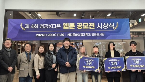 지난 20일 청강문화산업대학교와 웹툰·웹소설 출판사 다온크리에이티브가 함께 진행한 ‘제4회 청강×다온 웹툰 공모전’ 시상식이 청강문화산업대학교 만화도서관에서 열렸다.