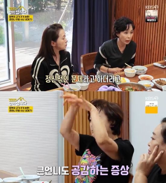 이에 박원숙은 "스트레스가 심해서 그렇다. 메니에르 병이다"라며 본인도 해당 증상을 겪었음을 전했다. 그러자 이경진은 "그게 정신적인 문제라고 하더라. 어지럽다"라며 당시 본인의 상태를 설명했다.