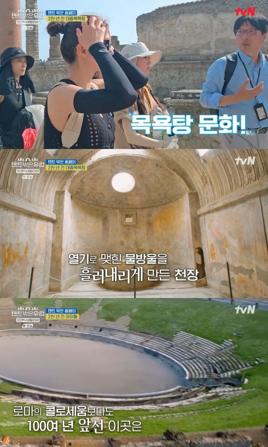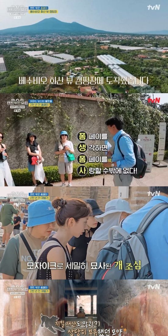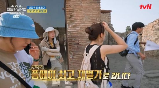 21일 방송된 tvN '텐트 밖은 유럽-로맨틱 이탈리아 편'(이하 '텐트 밖은 유럽')에서는 라미란, 곽선영, 이주빈, 이세영이 폼페이 유적지를 관광하는 장면이 전파를 탔다.