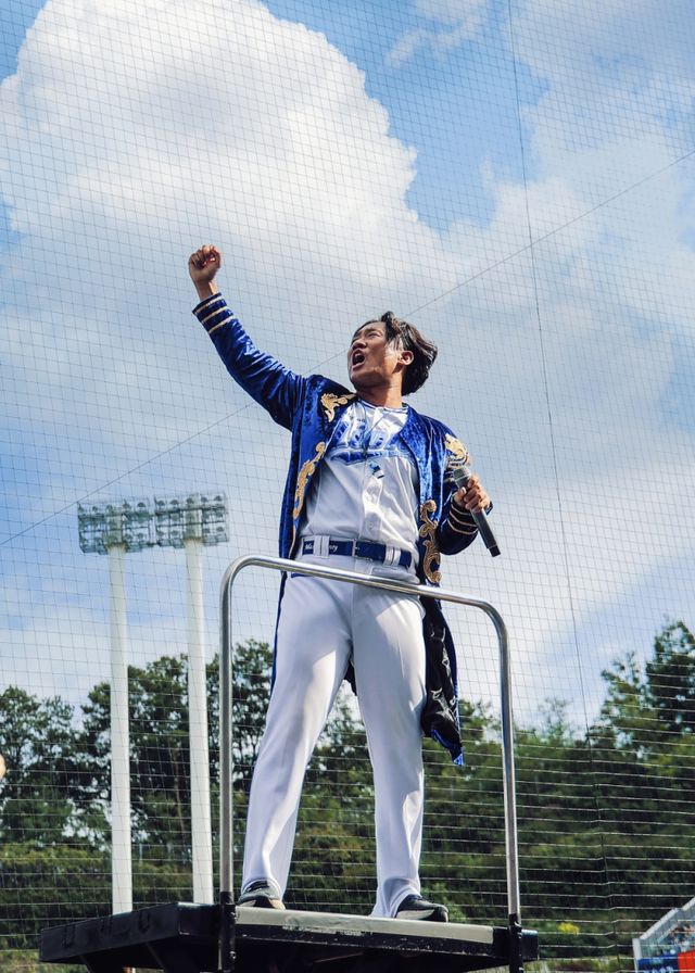 김 단장은 프로야구 10개 구단 응원단장 중에서도 스타 플레이어로 꼽힌다. 몸을 불사르는 열정의 응원, 2000년부터 시작해 어느덧 24년째 삼성 라이온즈와 이어져 온 시간의 힘도 크지만, 무엇보다 경기 중 사용되는 응원가를 직접 만든 장본인이라는 점이 그를 더욱 특별하게 만든다.