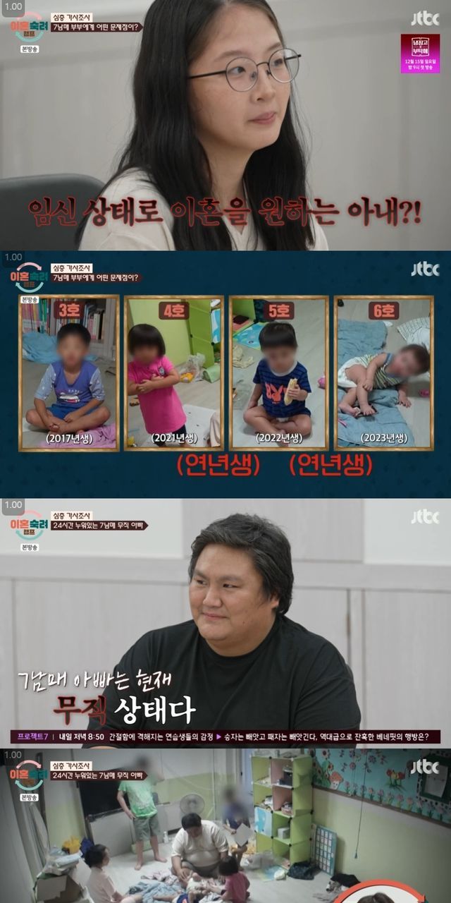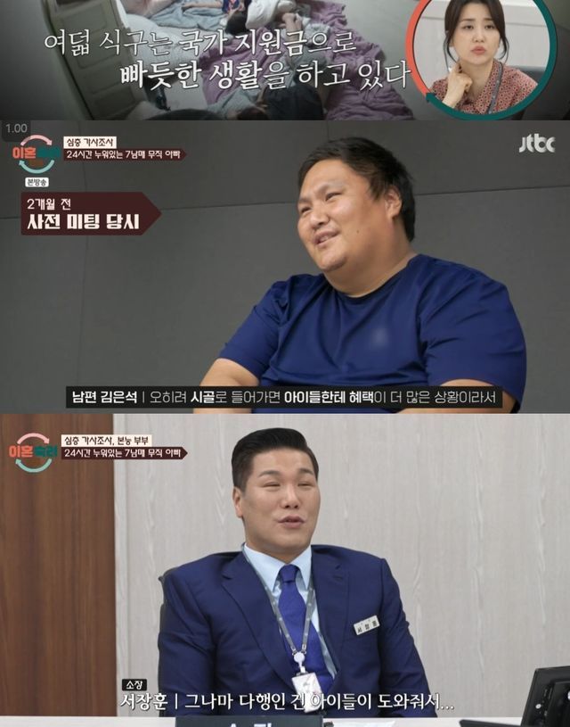 남편은 무직 상태로 1년을 보냈고 매 시간 집에 누워만 있다고 밝힌 아내는 "생계는 아이들에게 들어오는 거, 나라애서 다둥이 지원금으로 300만 원 좀 넘게 온다"고 이야기했다.
