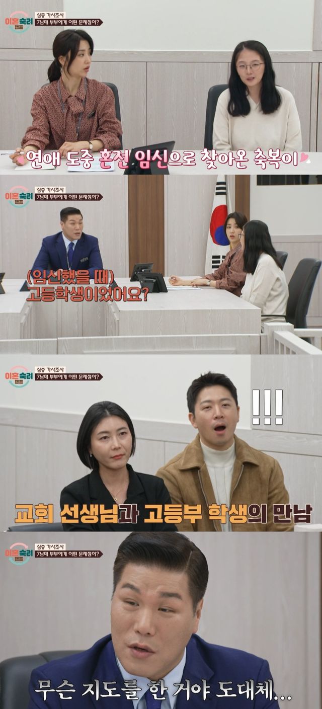 서장훈은 "둘은 어떻게 만났냐"고 질문했고 남편은 "제가 교회 선생님이고 아내는 고등부 학생"이라고 밝혔다. 이에 서장훈은 "선생님이 애들 지도를 해야지 뭘 지도한 거냐"고 분노했다.