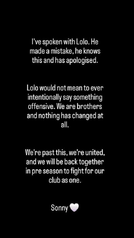 벤탄쿠르는 곧장 사과했다. 자신의 소셜네트워크서비스(SNS)를 통해 손흥민에게 "쏘니, 이번에 일어난 일에 대해 사과한다. 정말 나쁜 농담이었다. 내가 널 사랑하는 걸 알 거다. 널 무시하거나 다른 사람을 모욕할 의도는 없었다. 사랑해"라고 전했다.