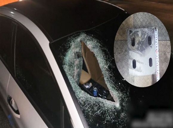 21일 SBS 보도에 따르면 지난 13일 새벽 경기도 시흥의 한 도로를 달리던 차량 앞 유리가 박살 나는 사고가 일어났다.