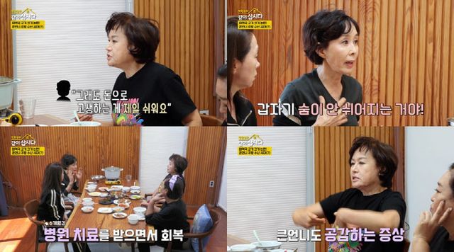 박원숙은 인생에서 가장 어려웠던 것이 무엇이었는지에 대해 “(금전적으로) 너무 힘들었을 때 나한테 ‘그래도 돈으로 고생하는 게 제일 쉬워요’ 하는 소리가 너무 서운했었다. 근데 더 큰 일을 겪고 나니까 ‘돈으로 겪는 어려움이 쉬운 거구나’ 생각이 들더라”라고 말했다.