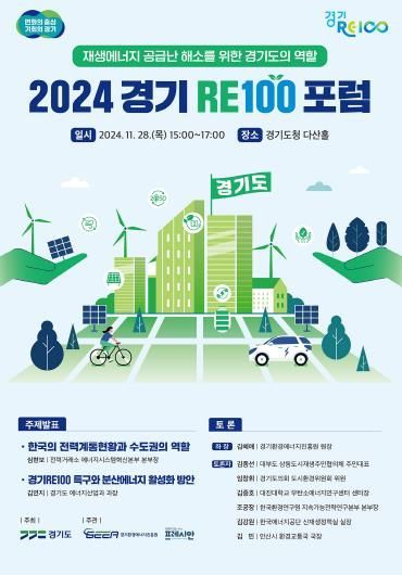[와이뉴스] 경기도가 오늘 28일 ‘2024 경기 RE100 포럼’을 개최하여 발전수익의 일부를 펀드에 참여하는 주민들에게 환원하고 재생에너지 발전시설을 집적화(클러스터)하는 내용을 담은 ‘경기 RE100 특구’의 청사진을 제시한다. 경기도는 도를 서해안, 북부, 동남권 등 3개 권역으로 나눠 내년부터 참여 시군 공모에 나선다.