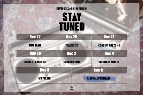 'STAY TUNED'는 세븐어스가 지난 3월 발매한 'SPRING CANVAS (스프링 캔버스)' 이후 9개월 만에 선보이는 새 앨범이다. 세븐어스는 '채널 고정'이라는 뜻을 지닌 이번 앨범을 통해 탄탄한 가창력과 하모니는 물론, 독보적인 음악 세계까지 선보일 계획이다.
