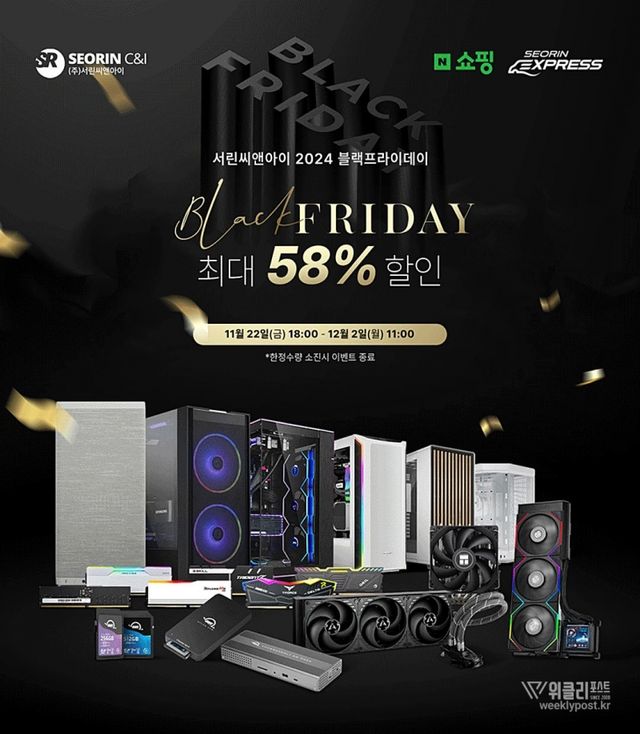 서린씨앤아이가 블랙 프라이데이 시즌을 맞아 대규모 할인 판매 행사를 진행한다. 단, 직영 서린익스프레스(www.seorinexpress.co.kr), 네이버 서린씨앤아이몰(www.smartstore.naver.com/seorincnimall) 한정으로 서린씨앤아이가 유통하는 전 제품이 대상이다.