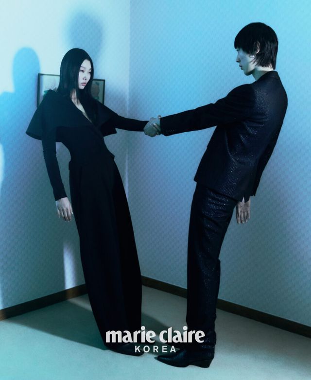 윤영 드레이프 칼라 재킷, 팬츠 모두 Jacquemus, 스퀘어 펌프스 Bottega Veneta.