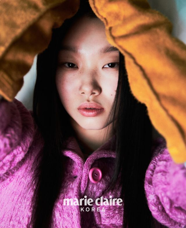 핑크 모헤어 재킷, 글러브 모두 Miu Miu.