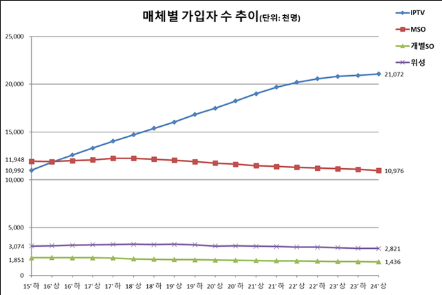 유료방송 매체별 가입자 수 추이. ⓒ 과학기술정보통신부