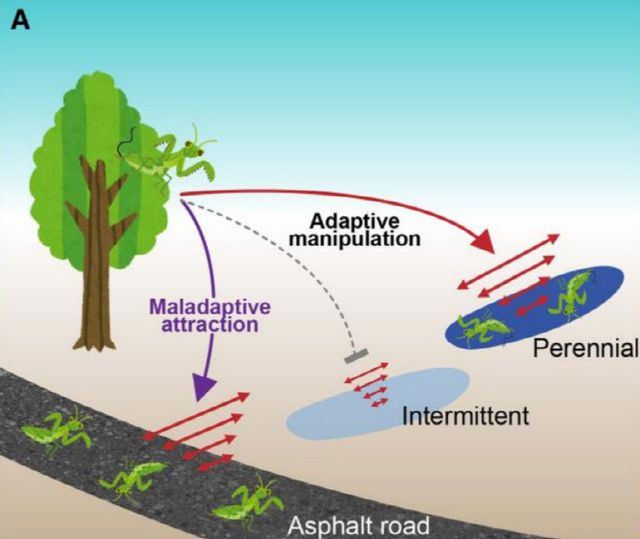 통상 연가시는 사마귀를 조종해 물가로 이동, 물에서 번식을 한다. 하지만 현대 환경에서는 물가가 아닌 아스팔트로 뛰어드는 사마귀가 많은데, 아스팔트에 반사되는 빛이 수면에 반사되는 빛과 비슷해 연가시도 착각하게 된다는 설명이다.