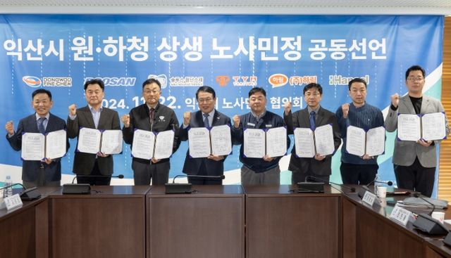 정헌율 시장은 "이번 공동선언이 실천으로 이어져 익산시 발전과 지역 경제 활성화의 중요한 발판이 되길 기대한다"며 "노사민정협의를 중심으로 사회적 협의를 이뤄가며 기업하기 좋은 도시, 일자리 걱정이 없는 도시 익산을 만드는 데 최선을 다하겠다"고 말했다.