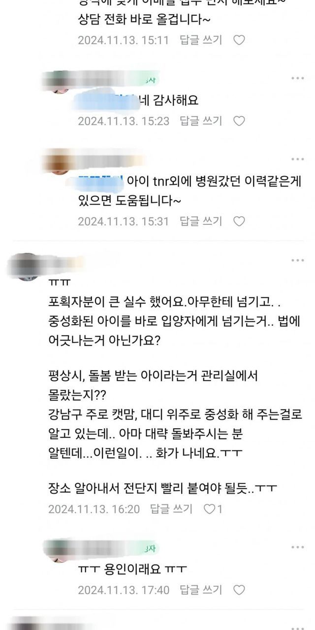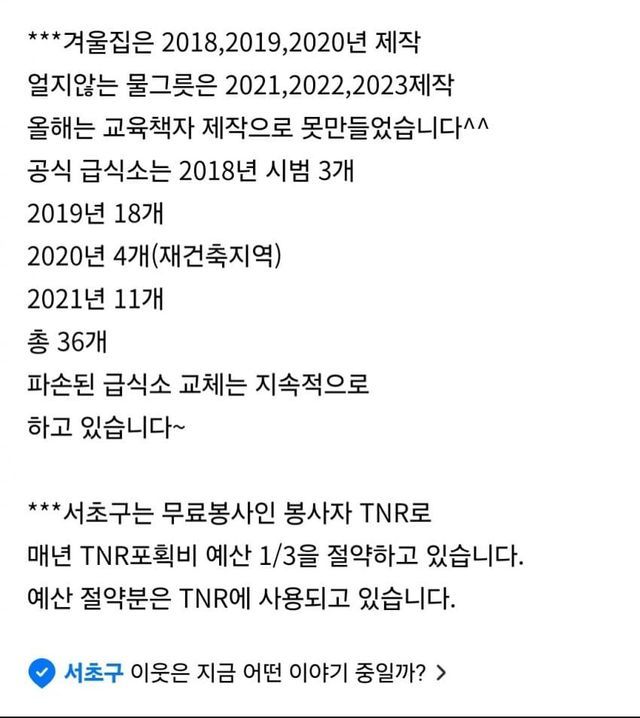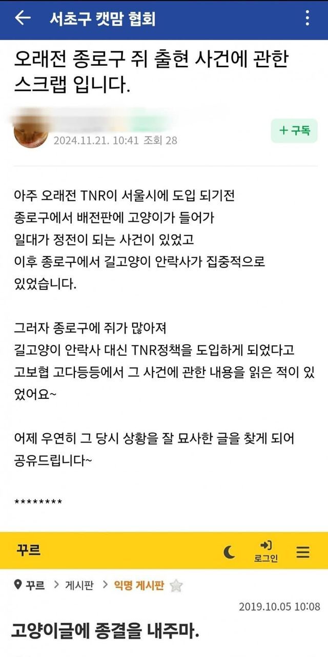 기사 내용이 나온 후 서초구 캣맘들의 역겨운 반응