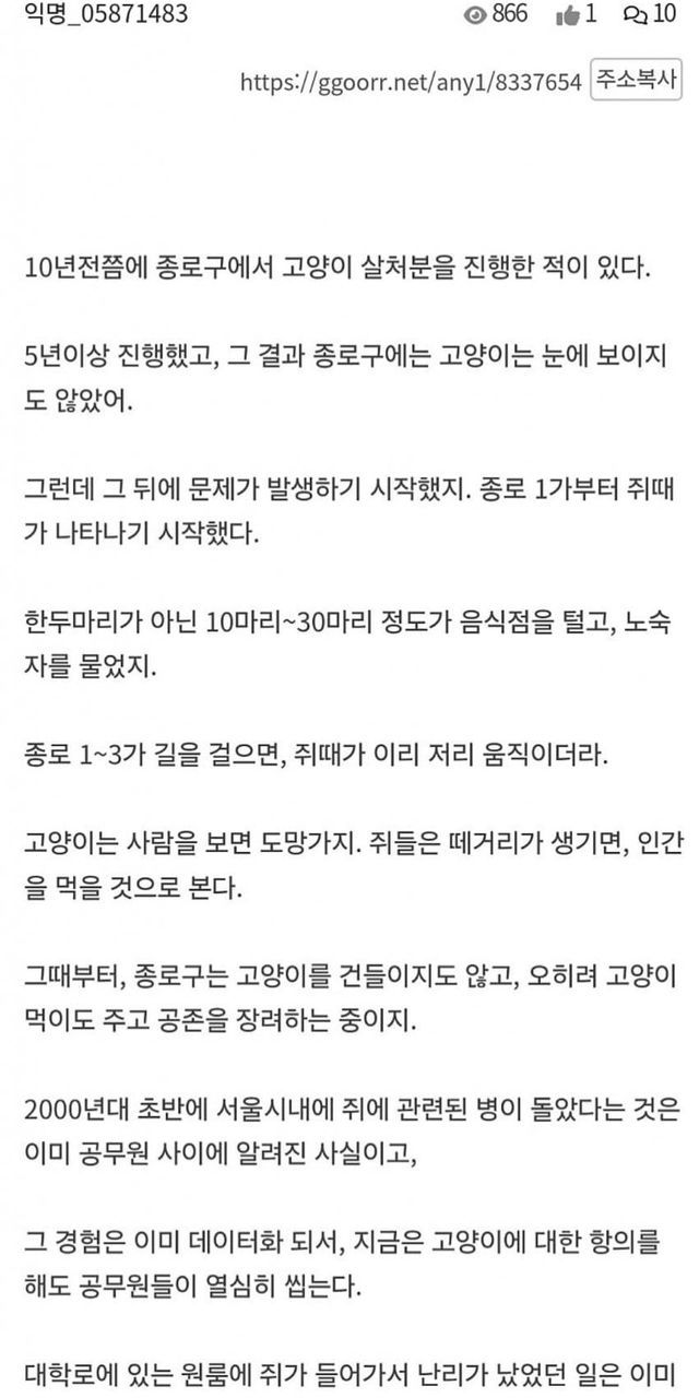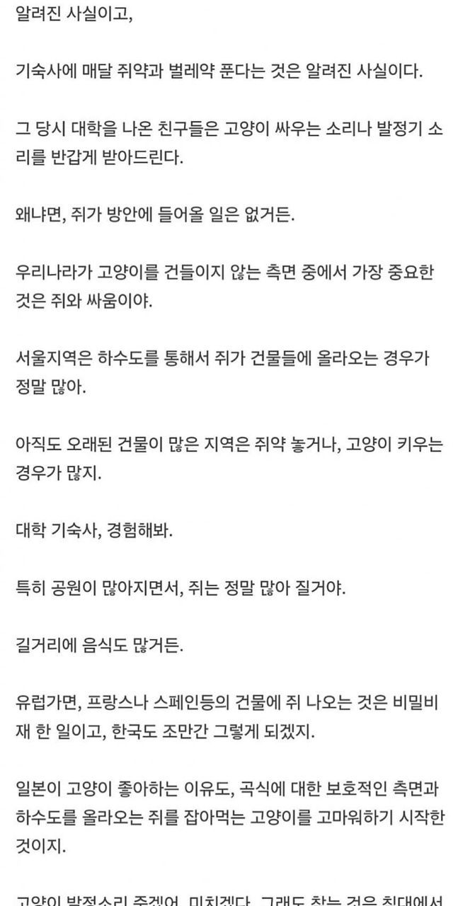 털바퀴가 없으면 시궁쥐가 늘어난다는 캣맘의 개소리