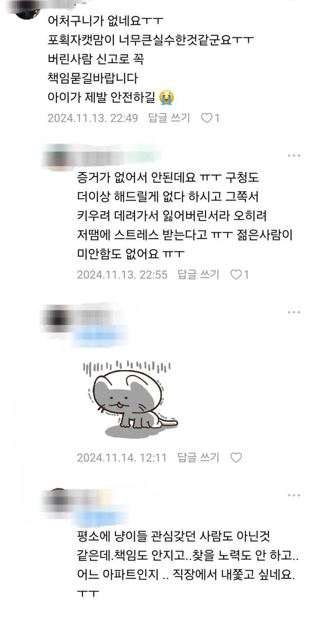 인스타그램 댓글에 신난 캣맘년들 다 몰려옴 개역겨워